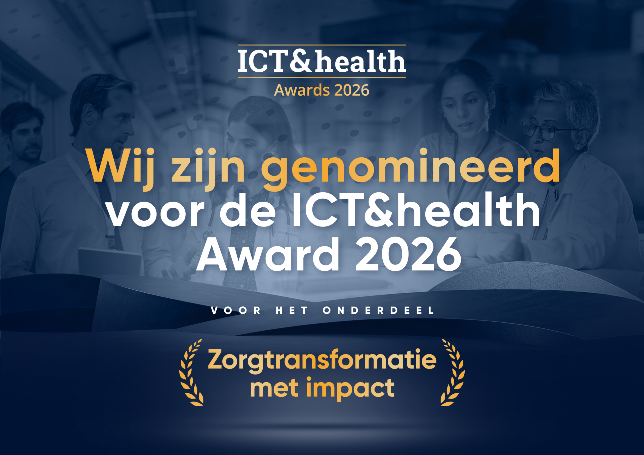 Wij zijn genomineerd voor de ICT&health Award 2026 in de categorie Zorgtransformatie met impact.